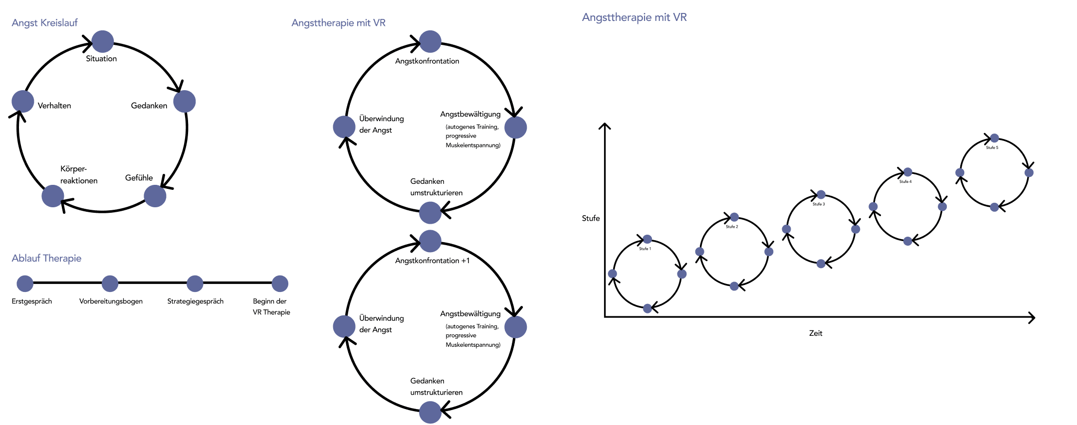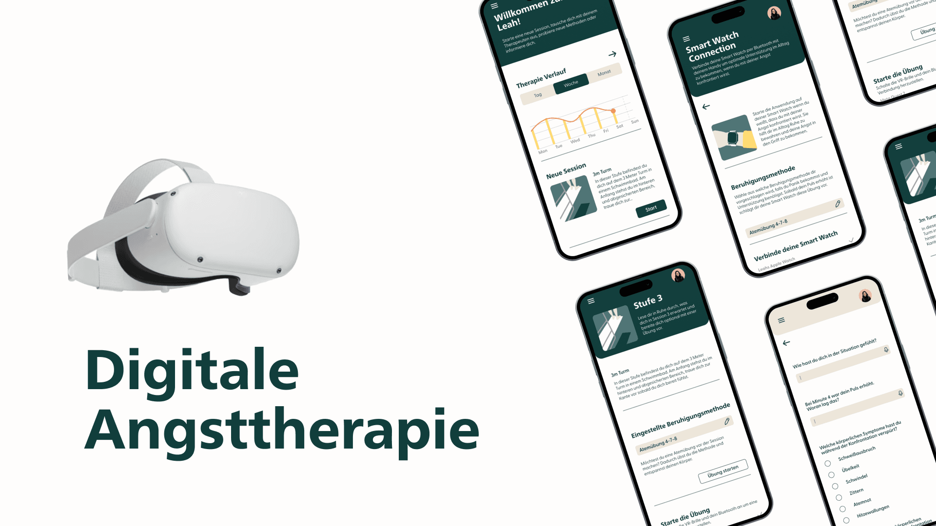 The “Digitale Angsttherapie” (digital fear therapy) is a concept comprising an application and the use of VR technology. Specially inventioned to support people with fears and phobias, this concept is designed not only to enable effective exposure therapy, but also to improve communication between patient and therapist.